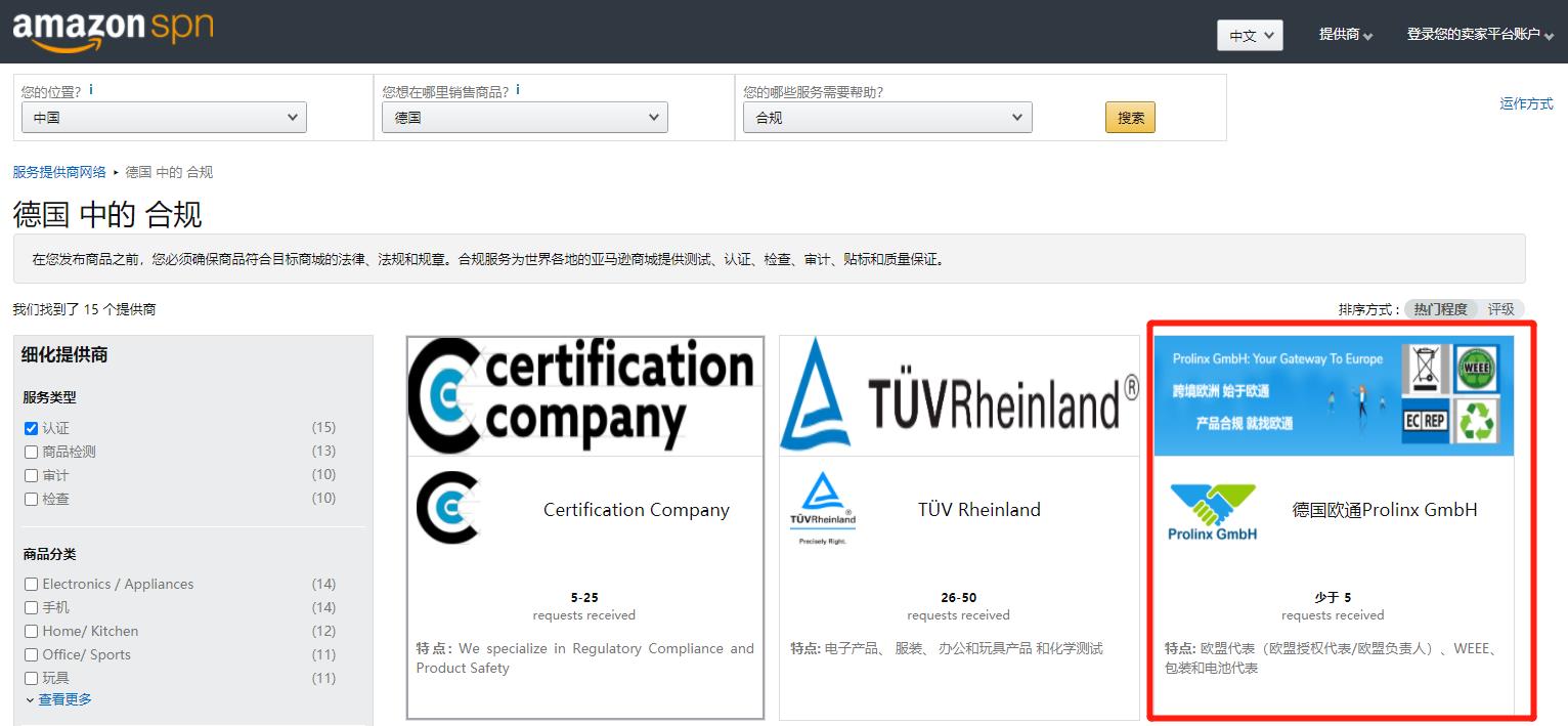 德国欧通Prolinx通过这篇文章手把手教跨境卖家如何通过官网找到亚马逊官方推荐SPN服务商,比如我们德国欧通Prolinx公司。