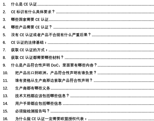 CE认证与符合性声明问答列表: