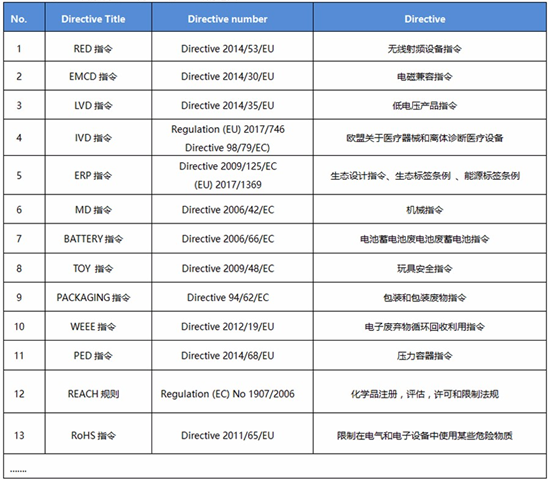 欧盟市场监督条例-适用的CE认证指令的范围: